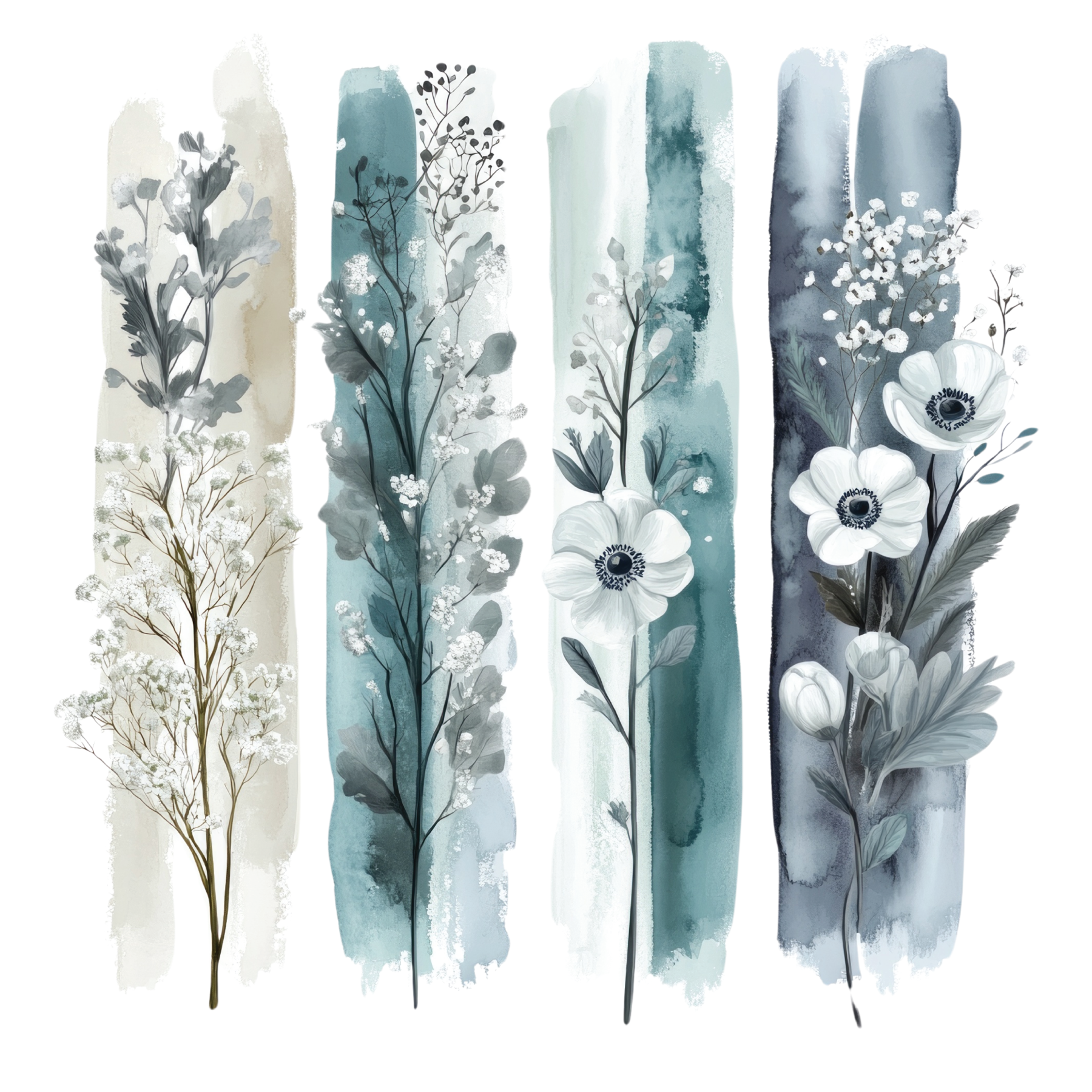 Dark Blue Wildflower Brushstroke Transfer